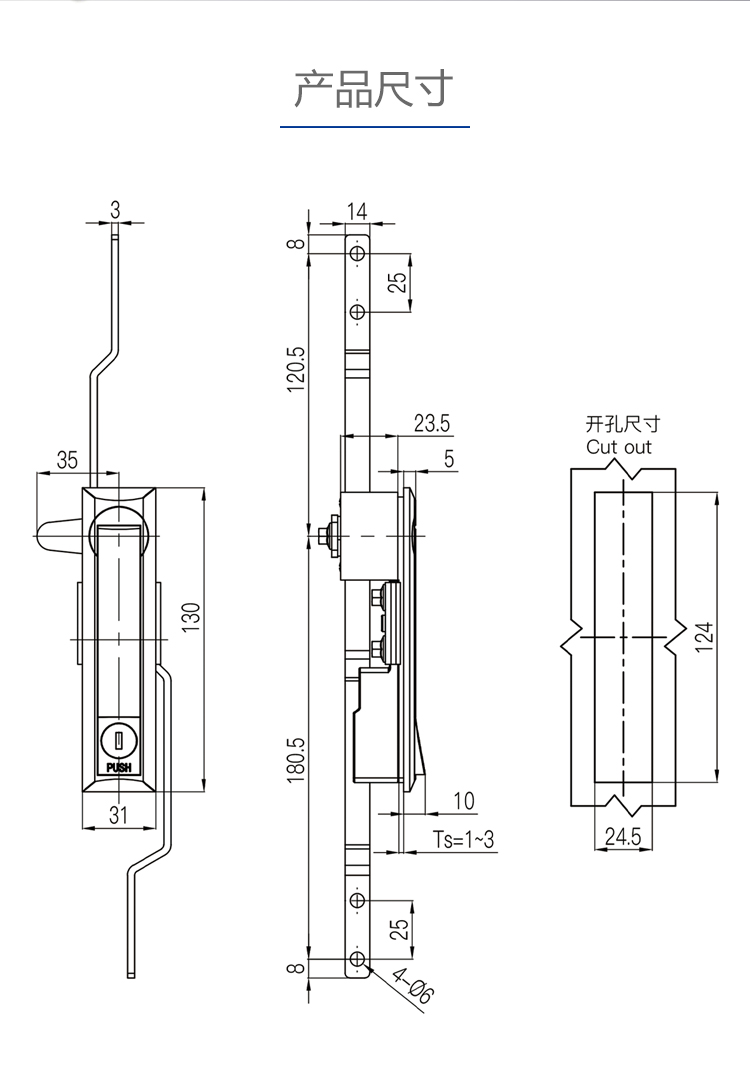 MS731不锈钢天地连杆锁配电箱电表工业柜门锁控制柜机械门锁