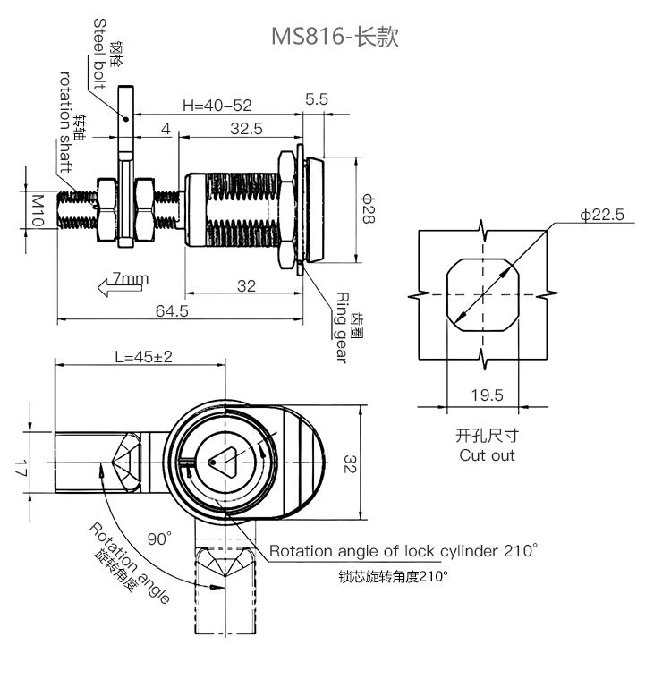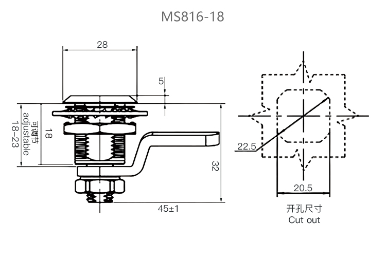 MS816不锈钢伸缩转舌锁压缩式配电箱电柜门锁垃圾箱门锁