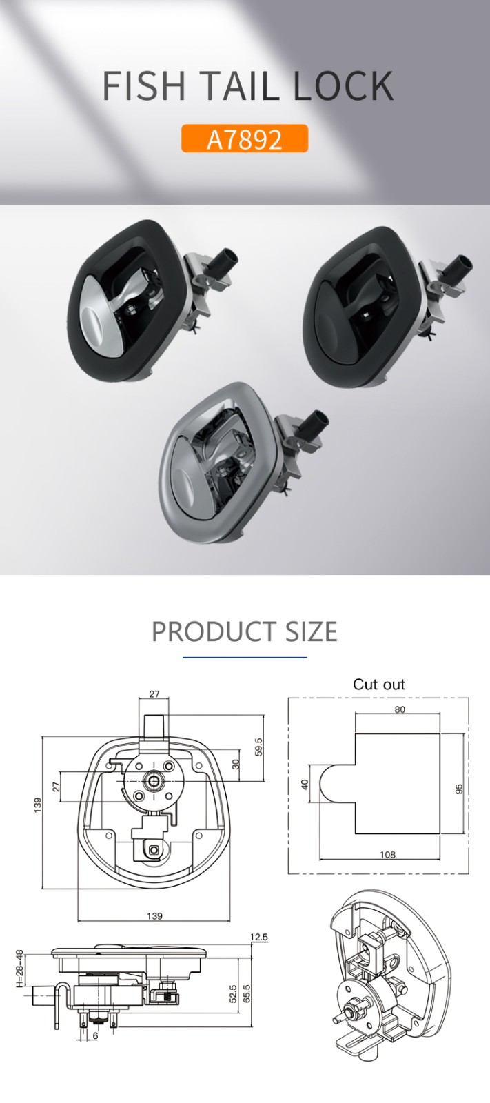 A7892 Special Truck Aluminum Toolbox Lock T-shaped Fish Tail Lock Off-road Modified Trailer Mechanical Door Lock