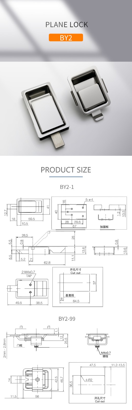 BY2-1 Flat Pull-Type Cabinet Lock Stainless Steel Material Panel Lock Industrial Cabinet Lock Switch Cabinet Machine Cabinet Equipment Door Lock
