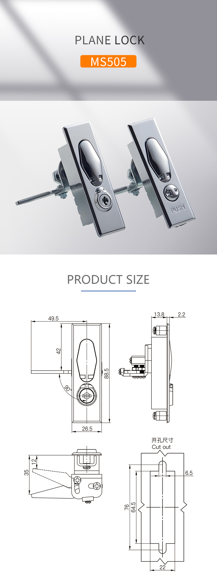 MS505 metering lock flat surface lock button snap lock switch for switch cabinet mechanical equipment door lock distribution cabinet door lock