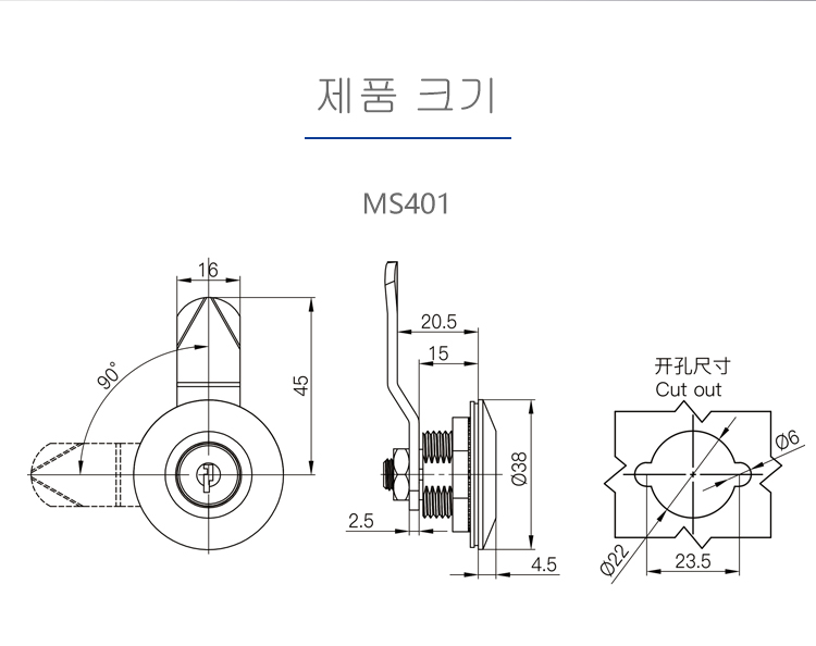 MS401배전상자 전기 계량기 자물쇠 공업설비 전기 캐비닛 문 자물쇠 원통형 자물쇠 혀 자물쇠