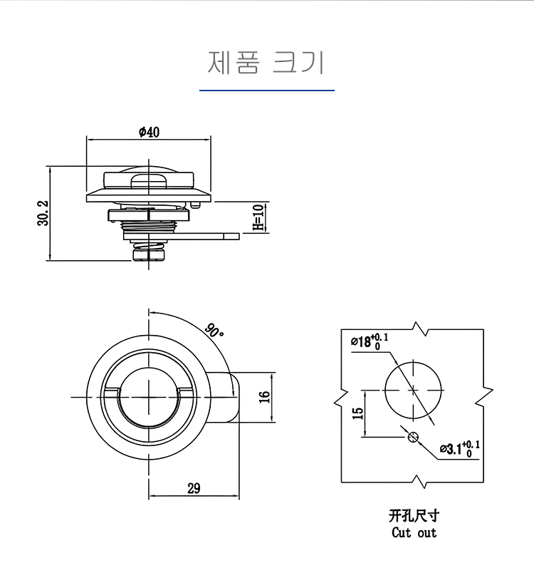 MS404-1 아연합금 접이식 혀손잡이 도어잠금 간이식 캐비닛문 손잡이 잠금