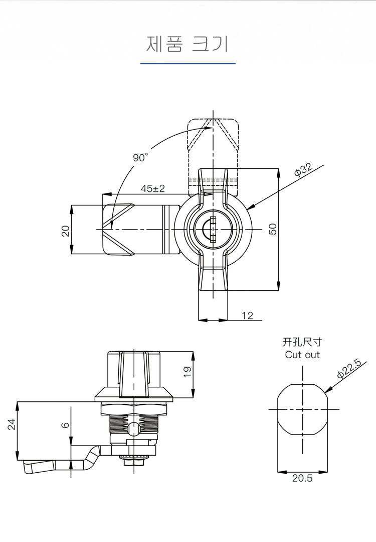 MS748원통형 자물쇠 배전함 개폐장 도어 자물쇠 공업기계설비 캐비닛 코어잠금 혀잠금