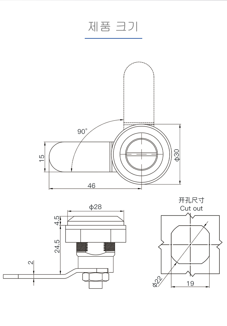 MS7060p 검은색 혀자물쇠 배전상자 전기캐비닛문 자물쇠 공업스위치자물쇠 기계설비문 자물쇠