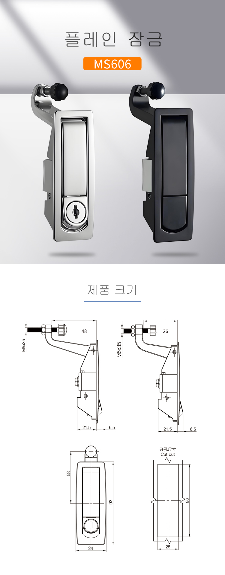 MS606 평면 점프식 전기 캐비닛 잠금 누름식 레버 잠금 아연합금 평면 매입식 버튼을 누르는 잠금