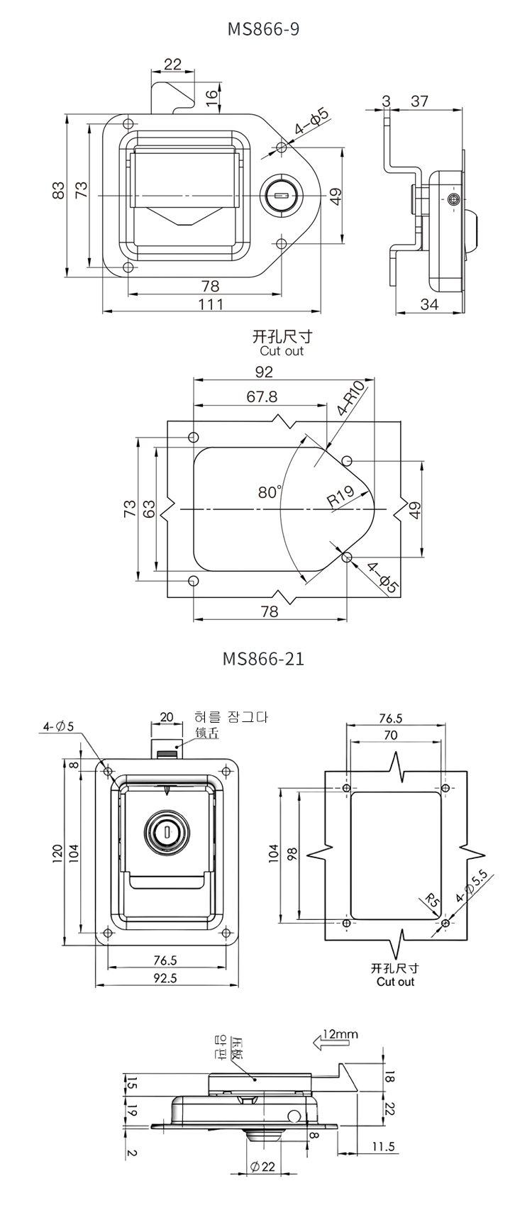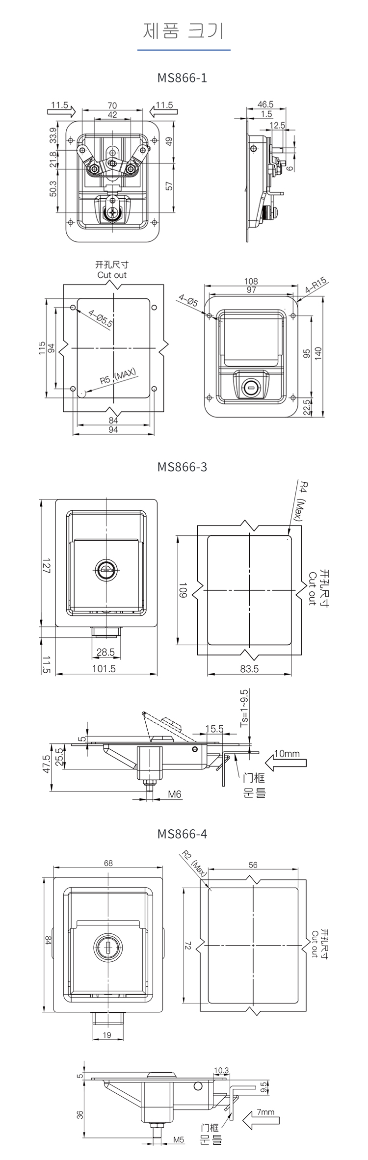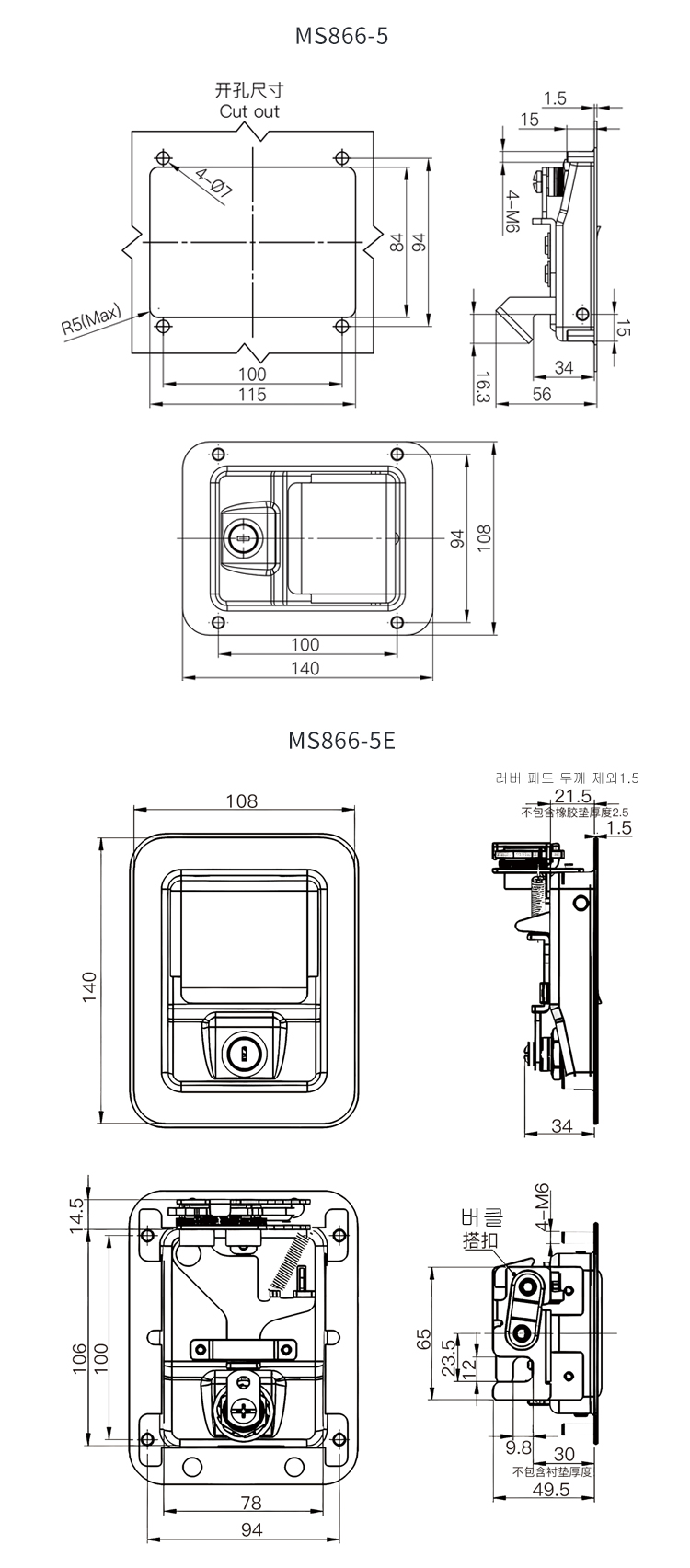 MS866 스테인리스 잠금박스 컨테이너 컨테이너 엔지니어링 트레일러 평면 걸쇠 발전기 덮개 도어잠금