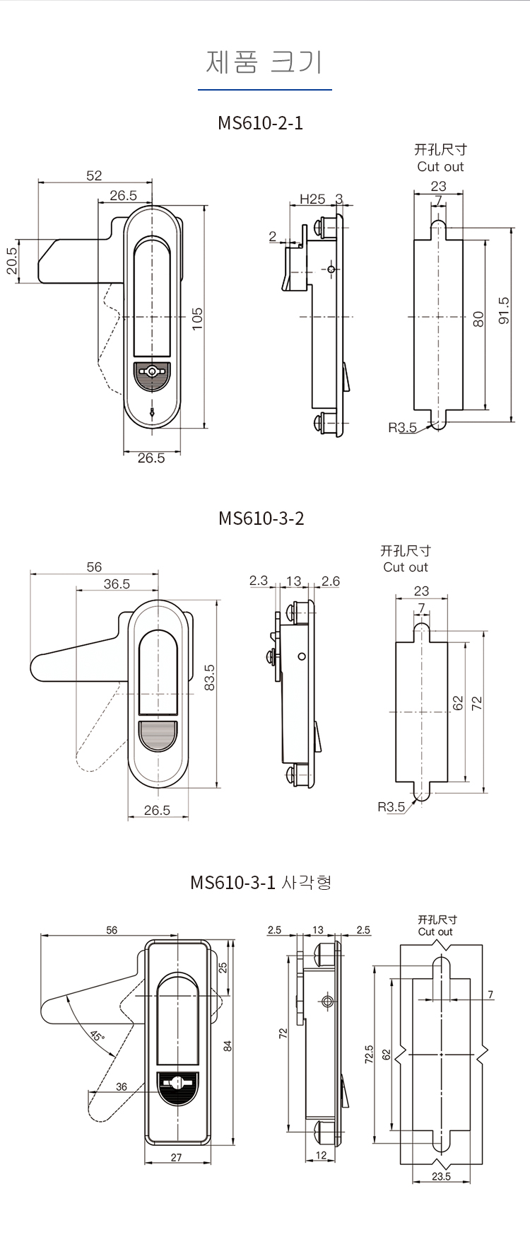 MS610 아연합금 배전함 잠금장치 전기캐비닛 문잠금장치 전기계량기 잠금장치 전기캐비닛 잠금장치
