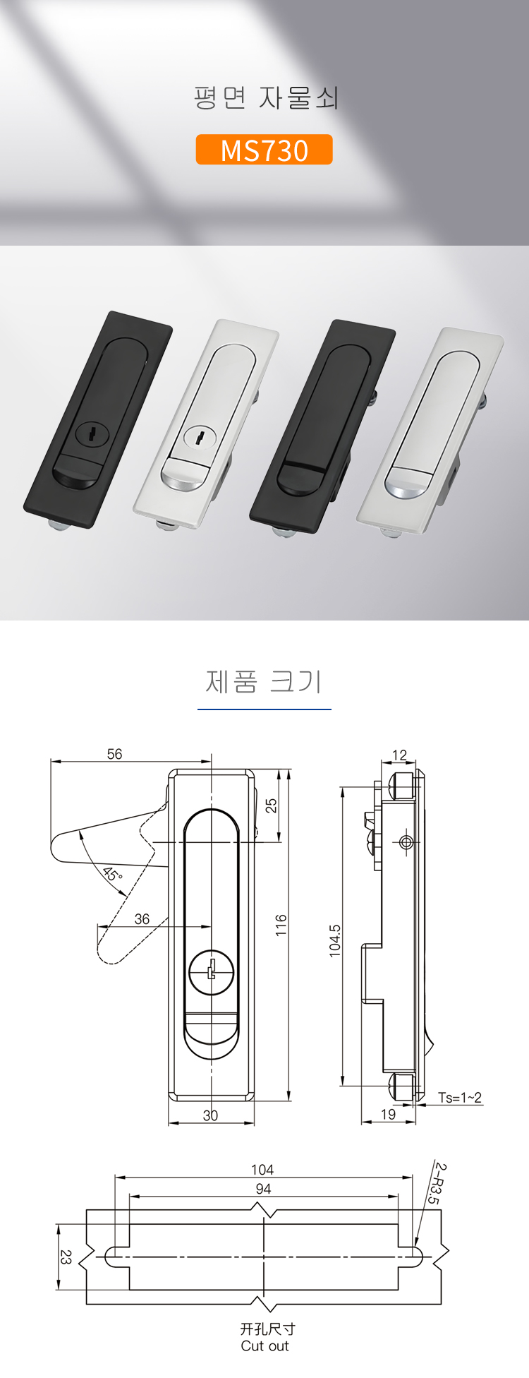 MS730 도어 잠금장치 평면 잠금 개폐 캐비닛 잠금 배전 캐비닛 도어 잠금장치 산업용 버튼 잠금장치