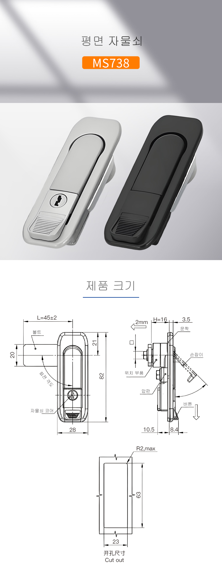 MS738 평면 캐비닛 자물쇠 배전 캐비닛 도약식 기계 자물쇠 공업용 소방 캐비닛 버튼식 자물쇠