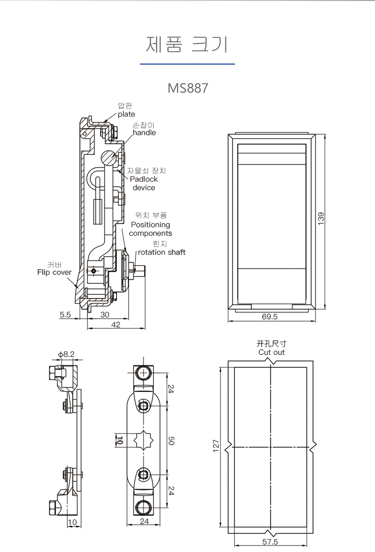 MS887/888 상자가변잠금장치 발전소 문잠금장치 개폐장치 문잠금장치 네모칸잠금장치 배전캐비닛 전면잠금장치