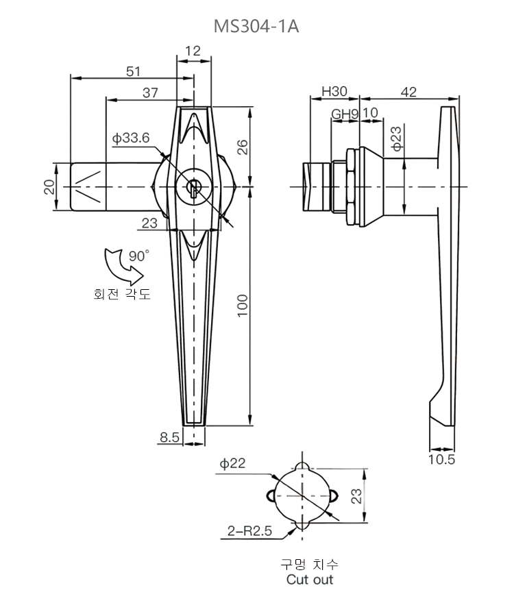 MS304-1A 손잡이 자물쇠 원통형 사물함 자물쇠 배전함 자물쇠 MS301 산업 설비 자물쇠 전기 캐비닛 자물쇠