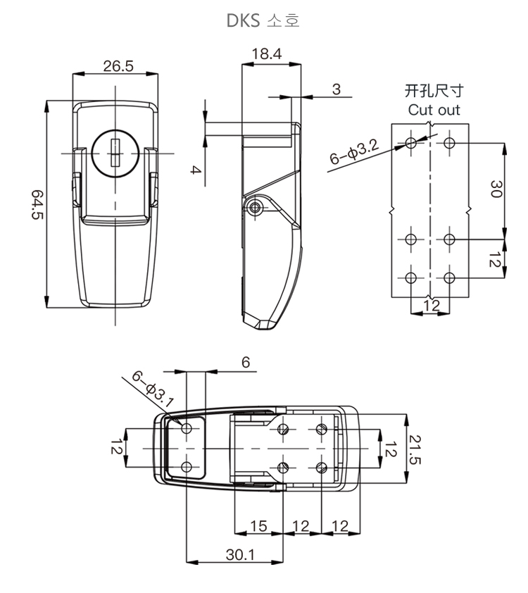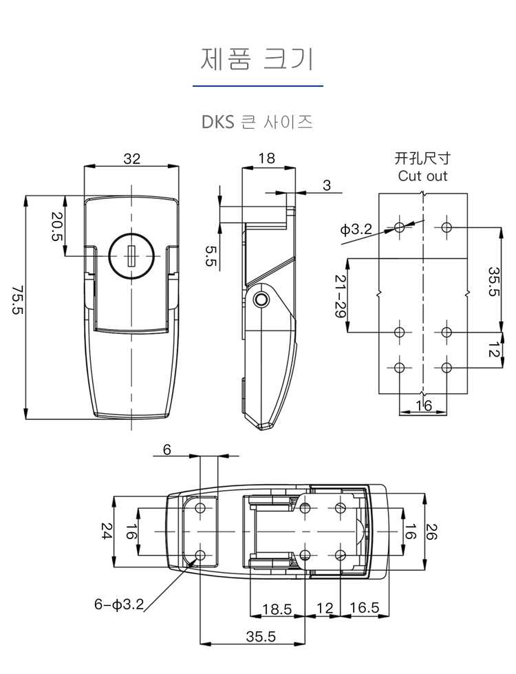 DKS 걸쇠잠금장치 개폐장치 문잠금장치 배전기장치 열쇠잠금장치