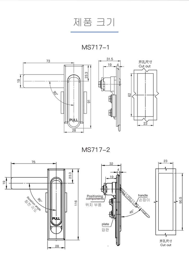 MS717 스테인레스 배전 캐비닛 문 평면 잠금 전기 캐비닛 기계 캐비닛 문 잠금 설비 잠금