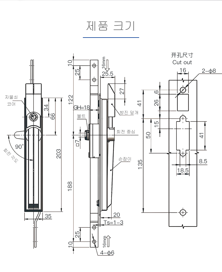 MS830 스테인레스 자물쇠 배전 캐비닛 문 자물쇠 웨이투 캐비닛 문 자물쇠 천지 연결봉 자물쇠 전기 캐비닛 자물쇠