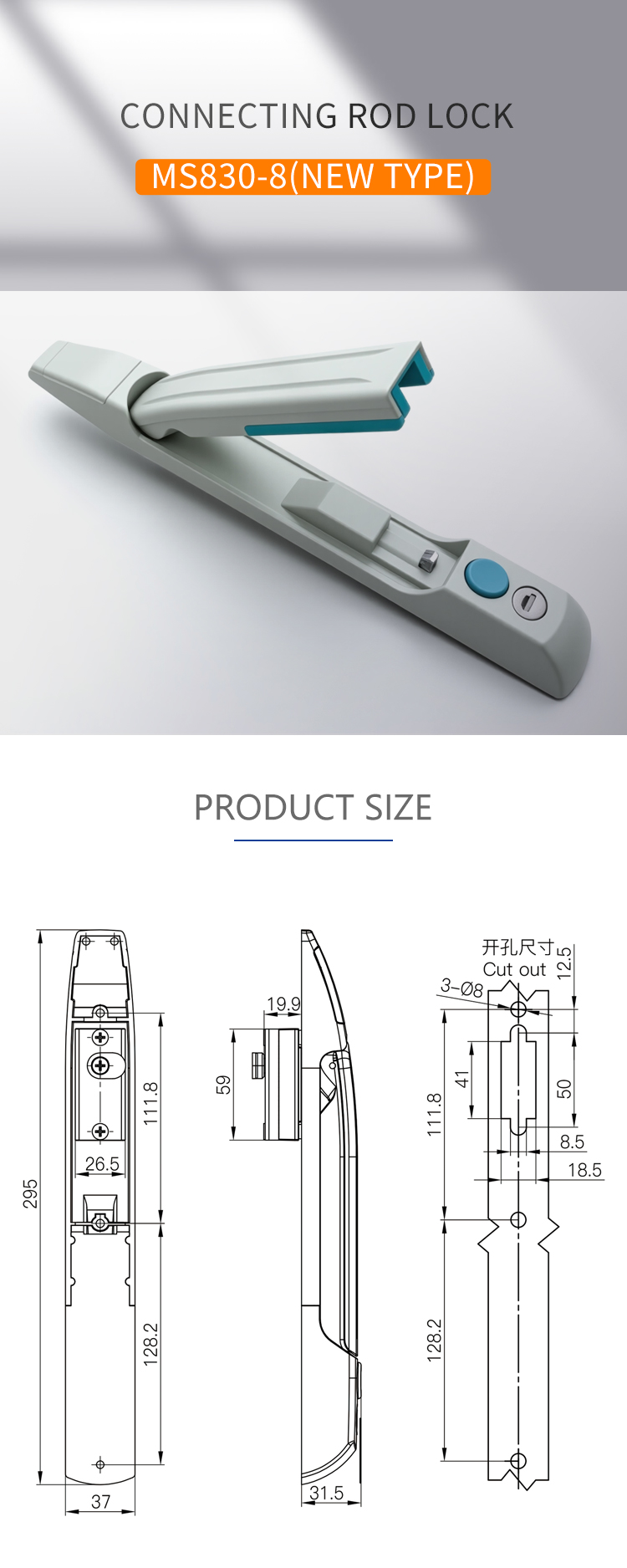 New MS830-8 lock anti-theft cabinet lock power cabinet lock floor-to-ceiling connecting rod lock switch cabinet door lock distribution box lock