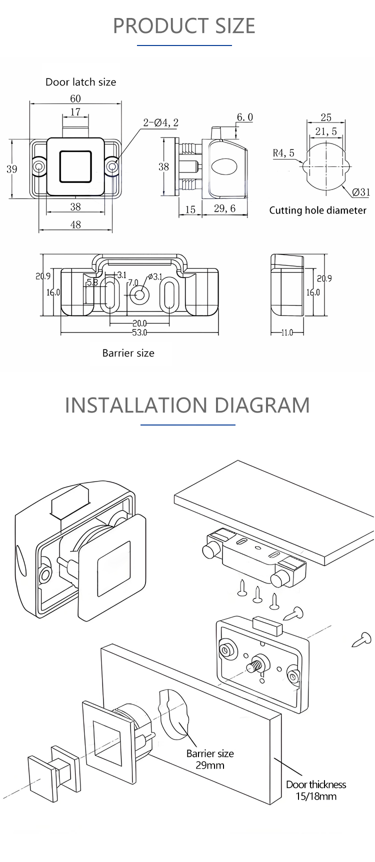A20 RV yacht lock hardware button lock for cabinet door, button lock for RV lock, boat button lock, yacht handle lock