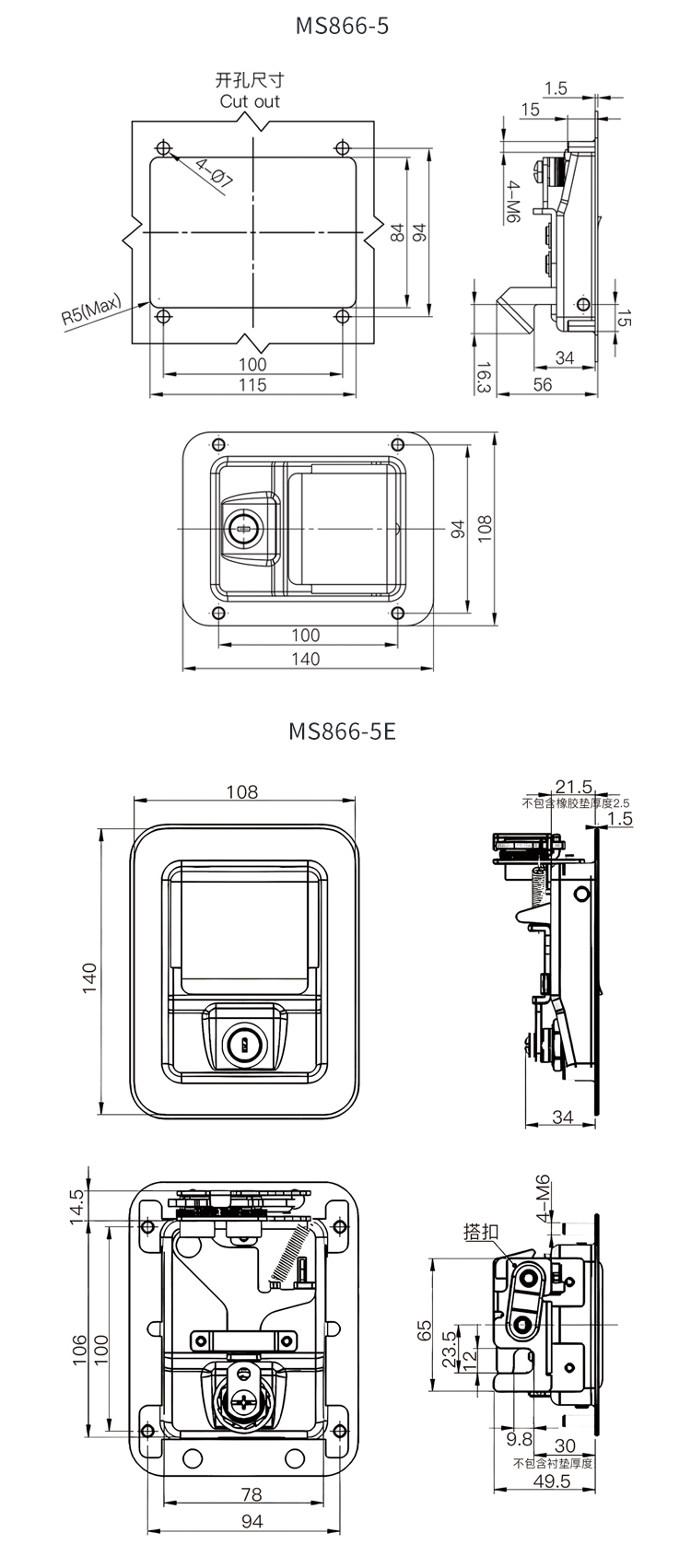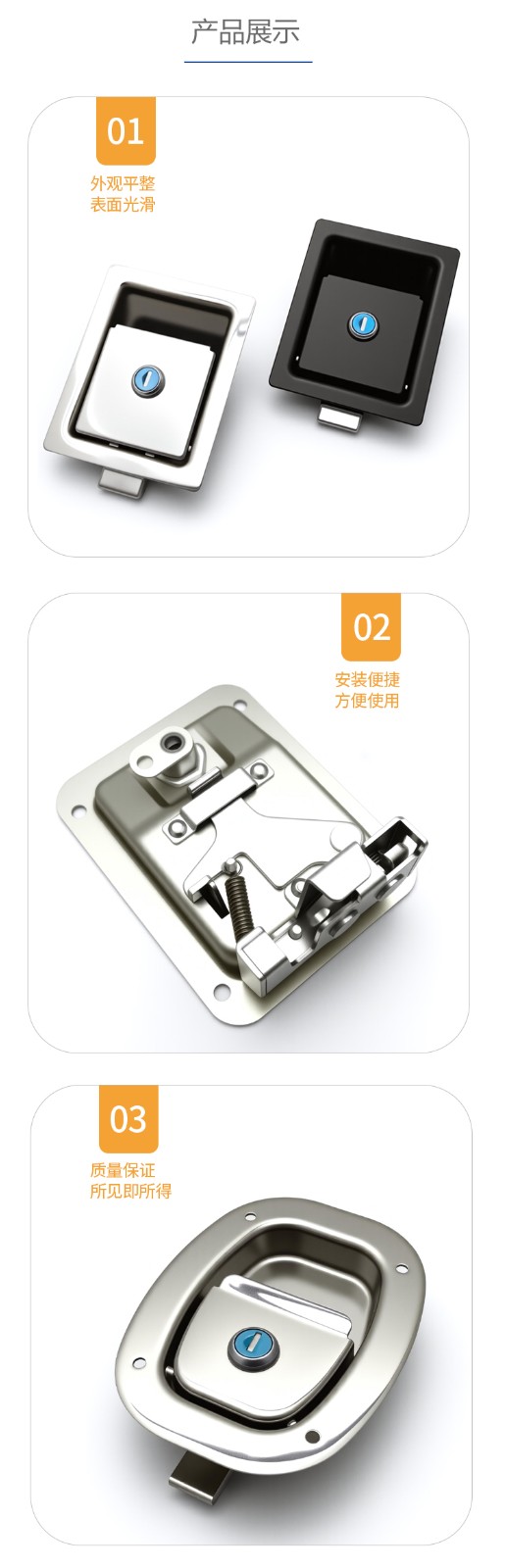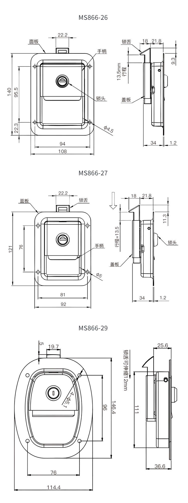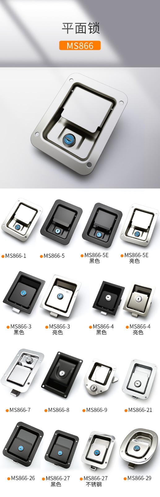 MS866不锈钢面板锁工具箱厢式货车工程房车平面扣手发电机罩门锁