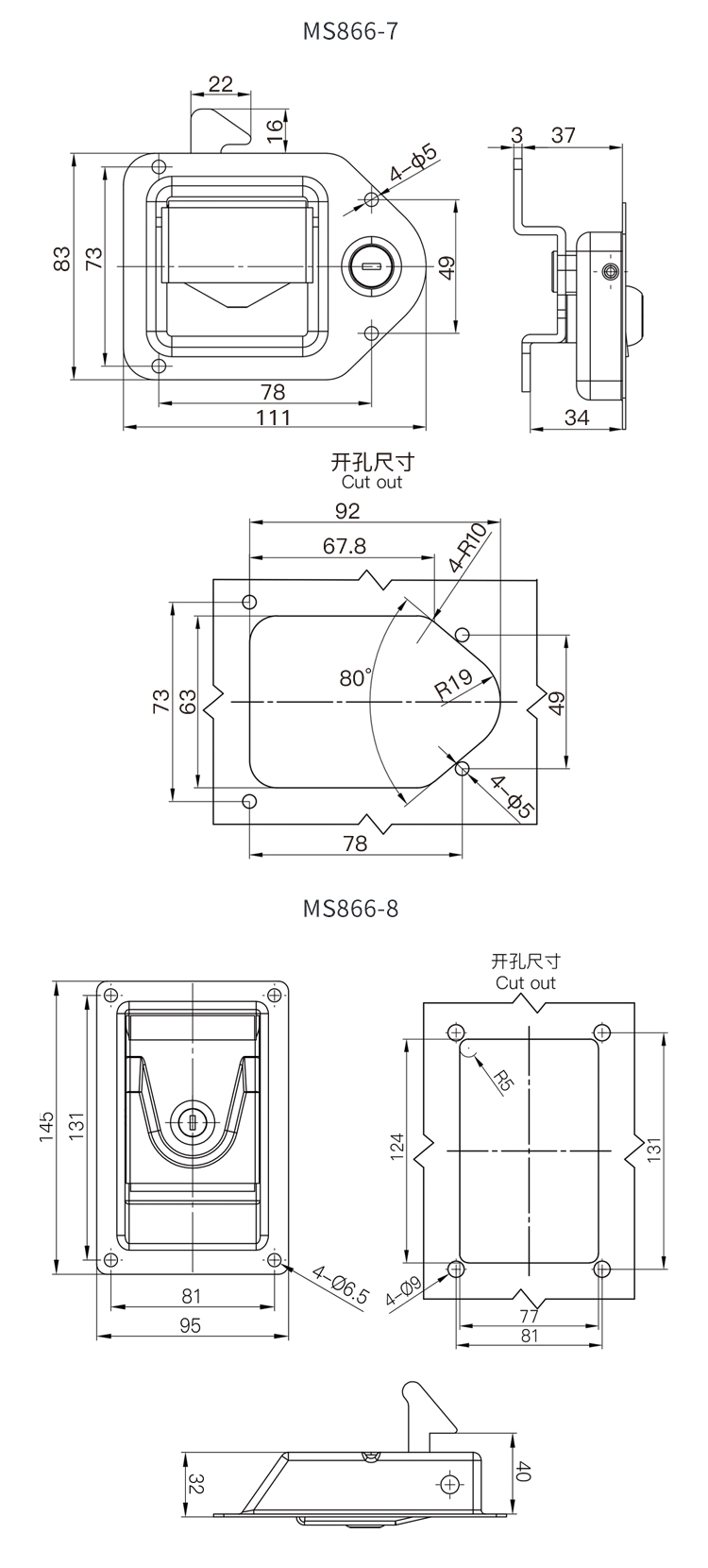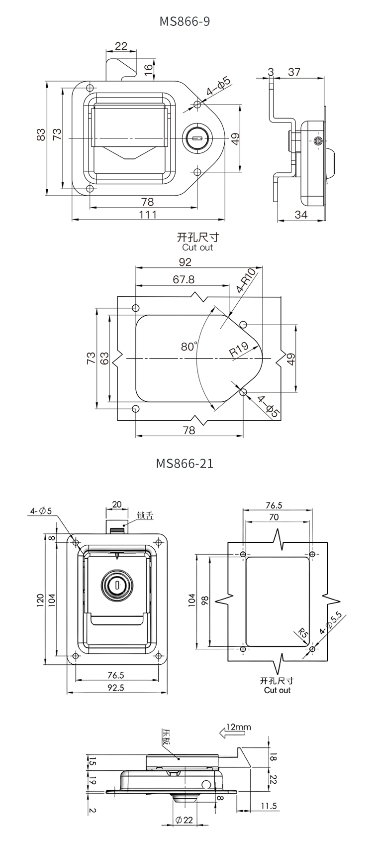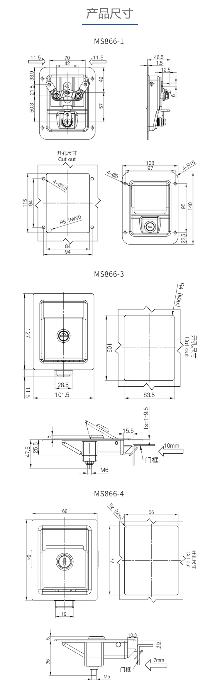 MS866不锈钢面板锁工具箱厢式货车工程房车平面扣手发电机罩门锁