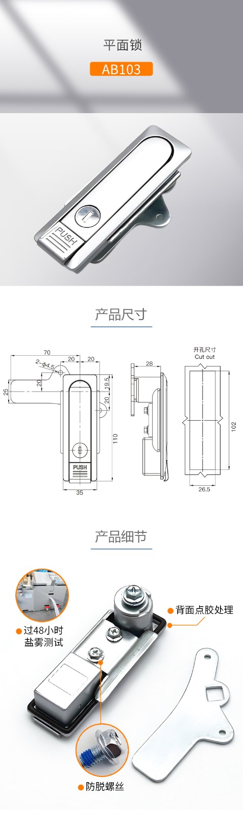 AB103平面按钮锁 配电箱消防机箱机柜锁电柜门控制箱锁电器柜锁