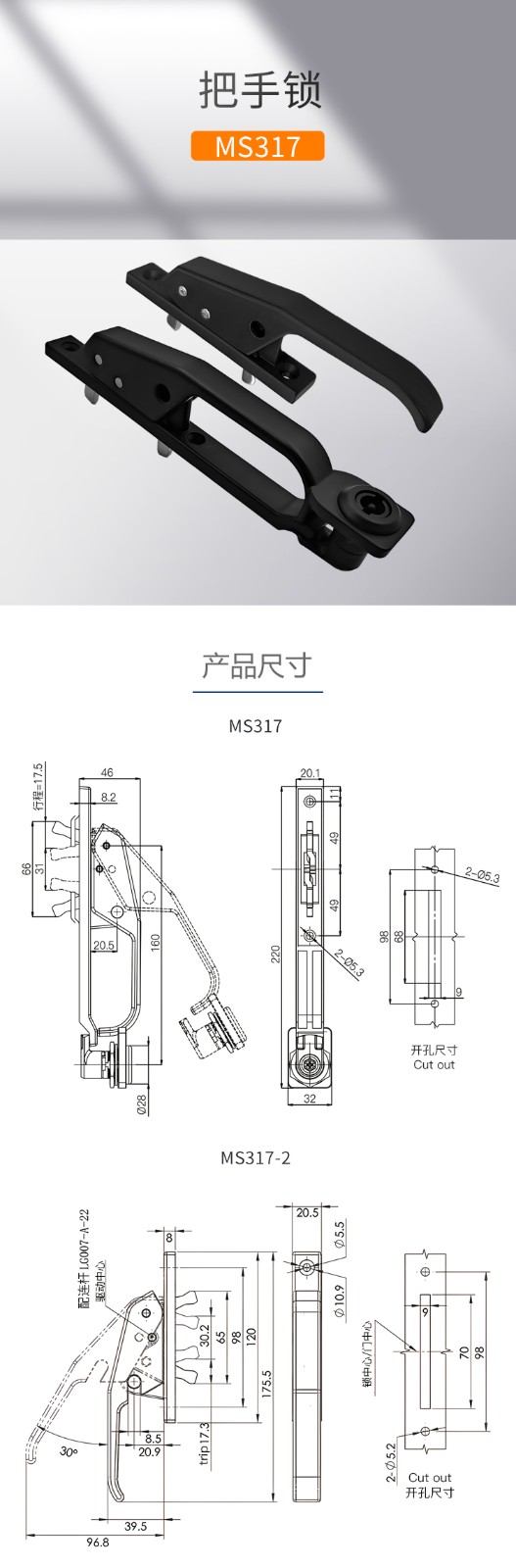 MS317锁中置柜锁充气柜门锁机箱柜外装机械门锁工业电控柜锁把手锁
