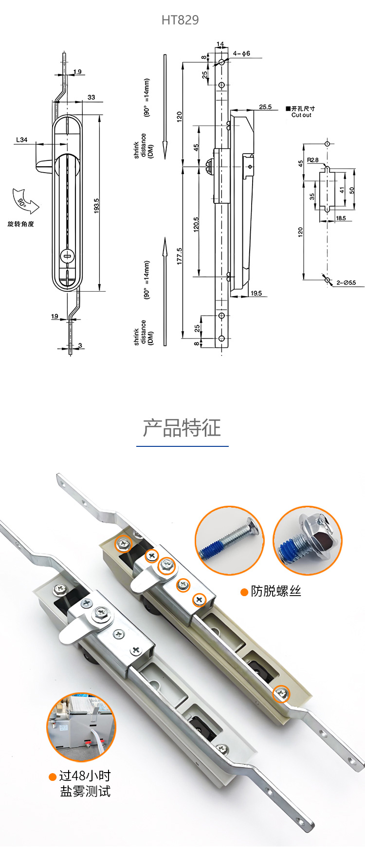 MS829天地连杆锁PS柜通讯柜机箱机柜门锁配电箱拉杆锁