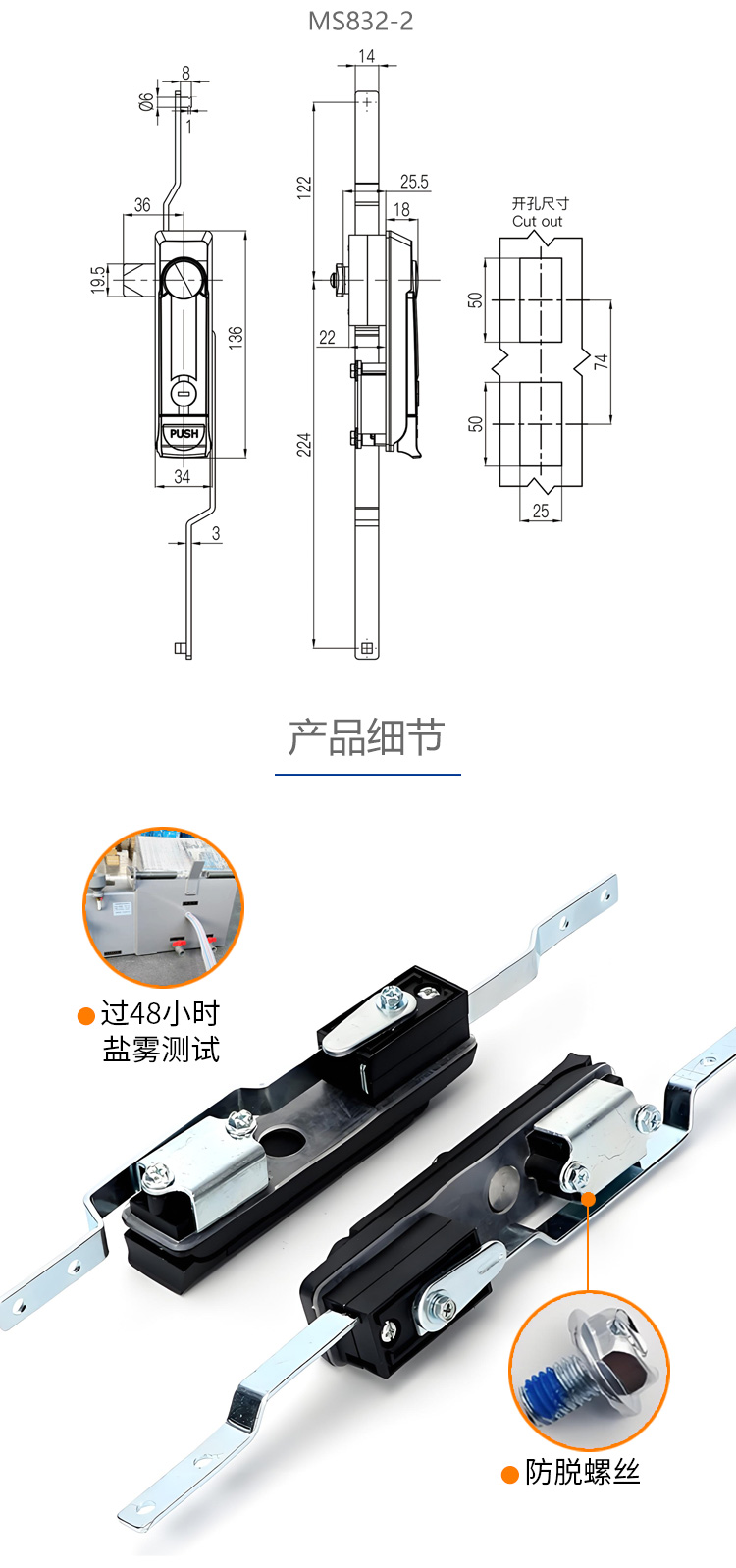 MS832连杆锁电柜锁机械门锁电器柜门锁开关配电箱柜门锁