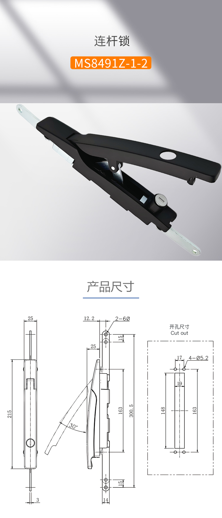 MS8491Z连杆锁威图柜锁机械设备门锁电柜门锁配电箱拉杆锁
