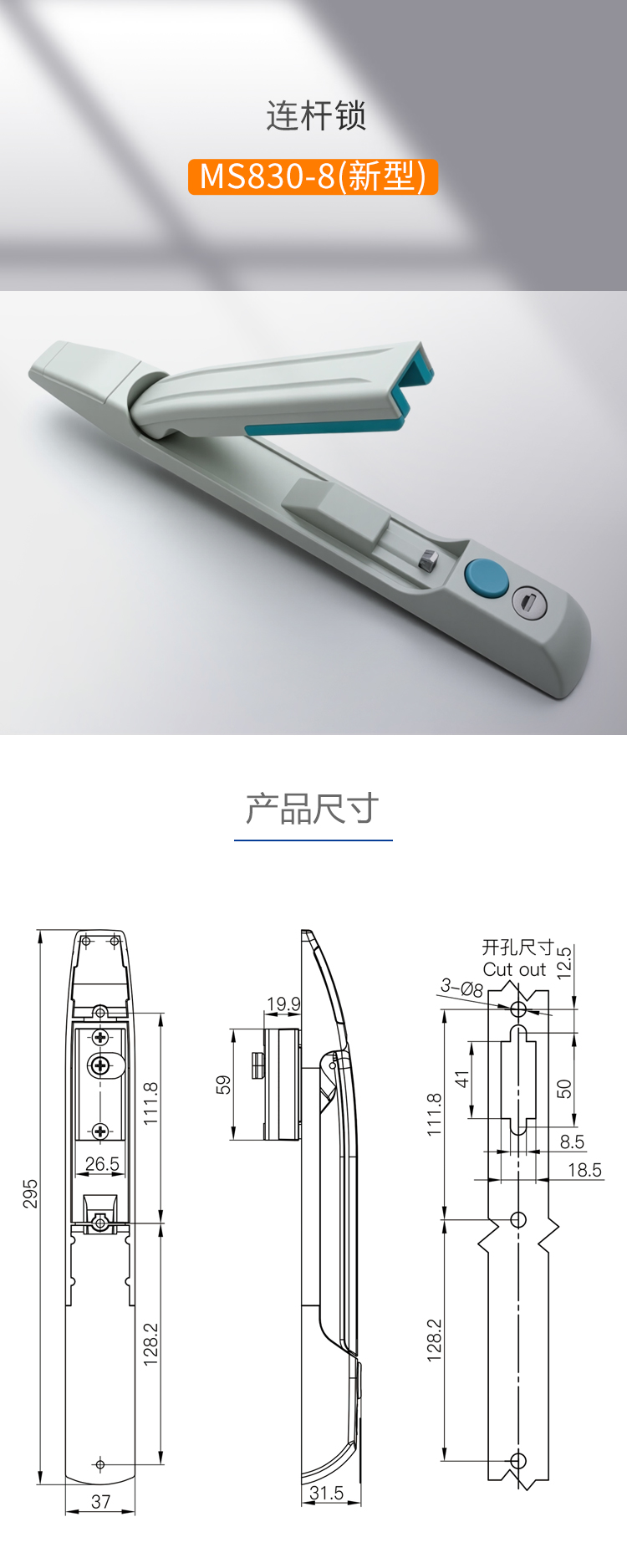 新型MS830-8锁防威图柜锁动力柜锁天地连杆锁开关柜门锁配电箱锁