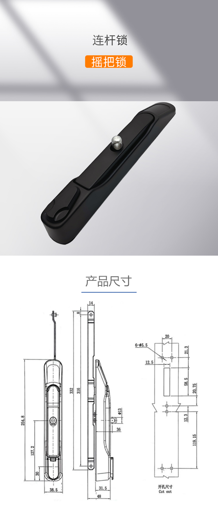 摇把锁高低压配电箱柜门锁开关控制柜锁平面锁电箱充电桩柜门锁