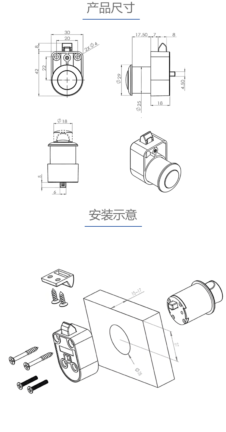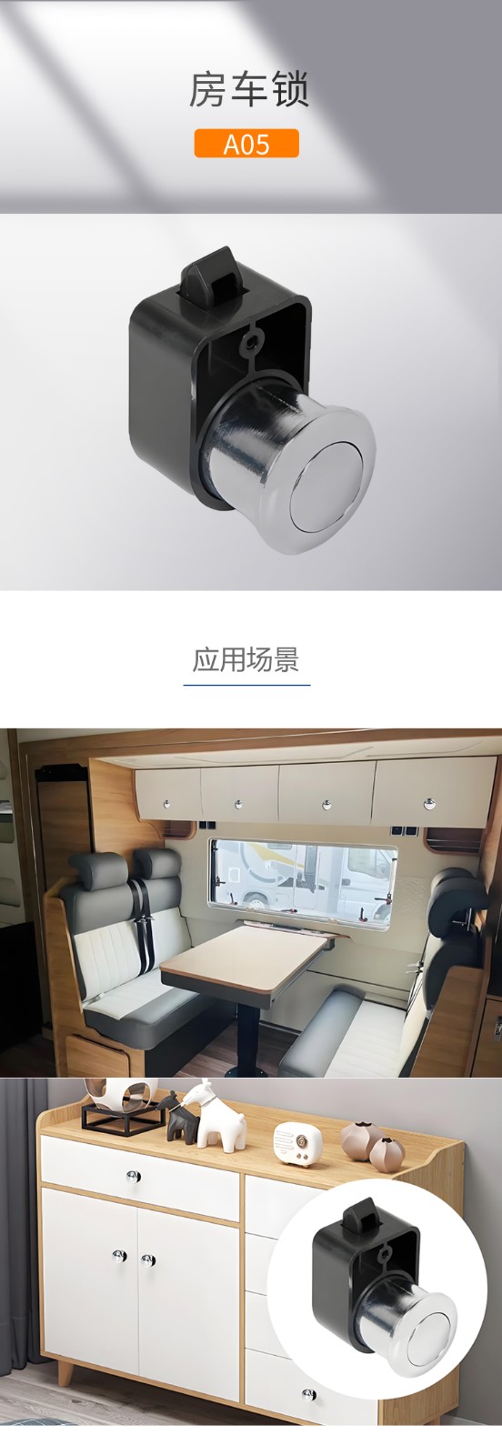 A05房车游艇锁埋入式柜门锁按压打开锁房车家具橱柜吊柜抽屉按钮锁