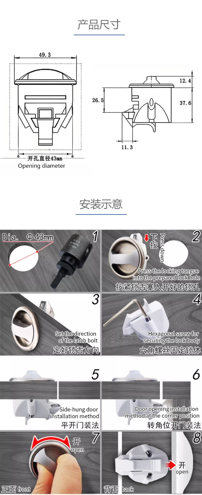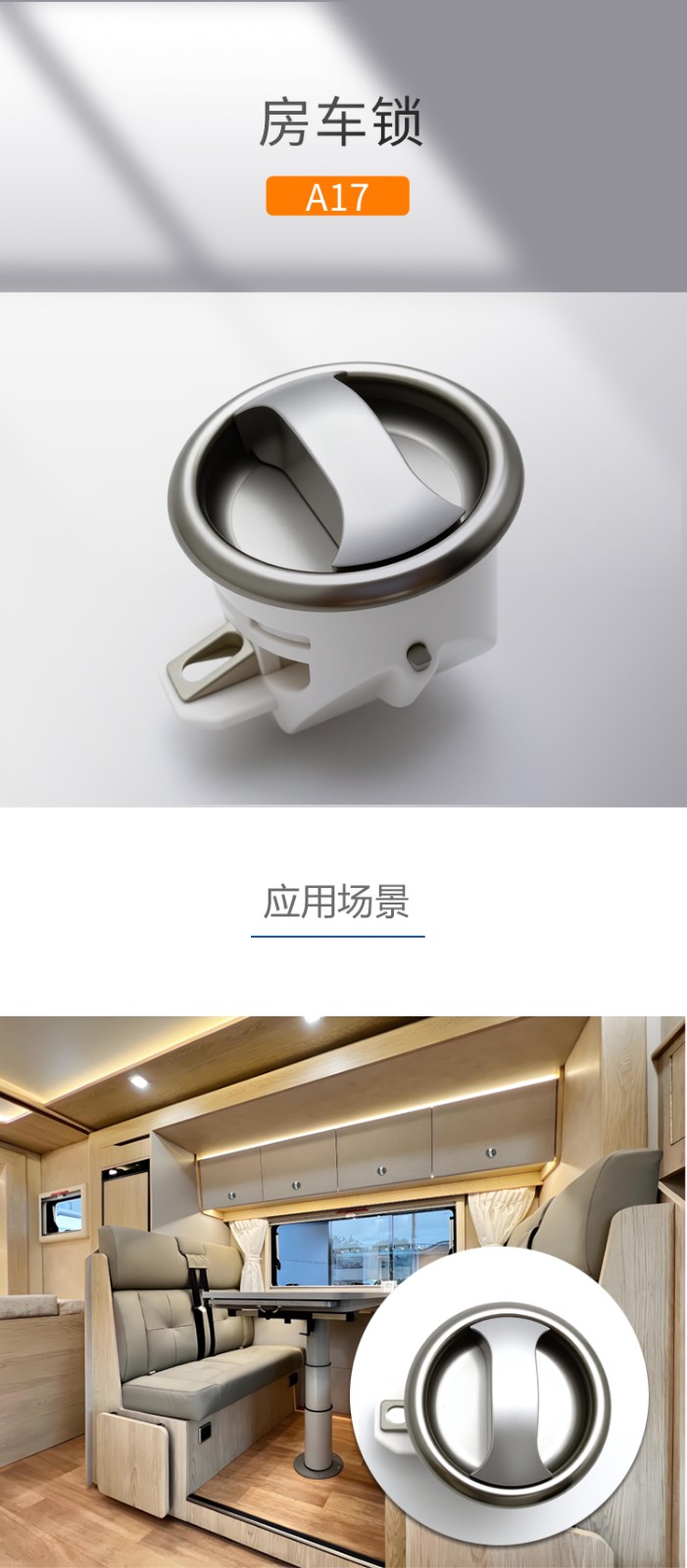 A17房车锁洗手间撞击式旋钮门锁厕所卫生间圆形旋钮锁旅行车游艇门锁