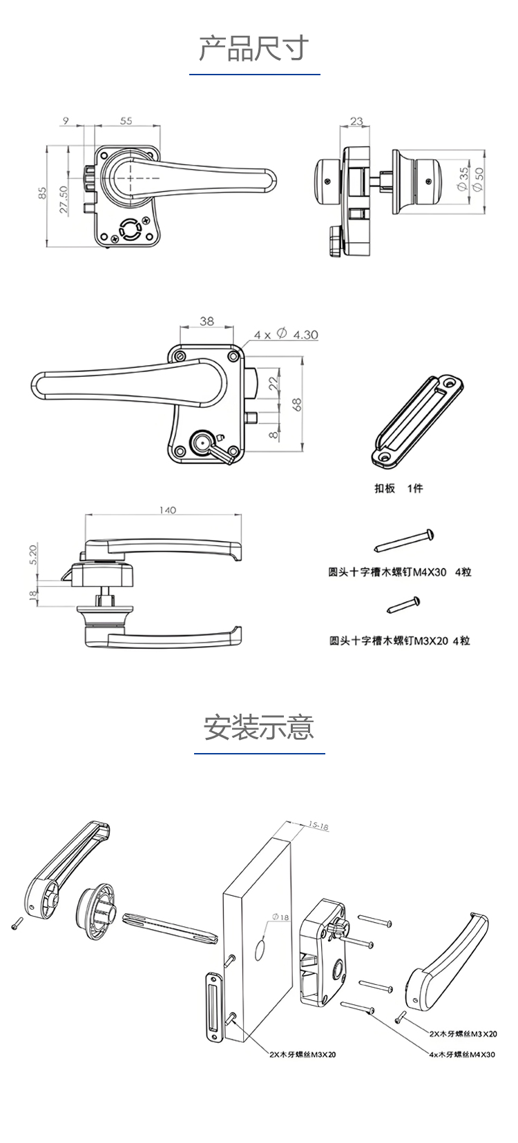A18房车游艇锁定制锌合金执手锁房门浴室通道门把手锁卫浴锁具三杆锁