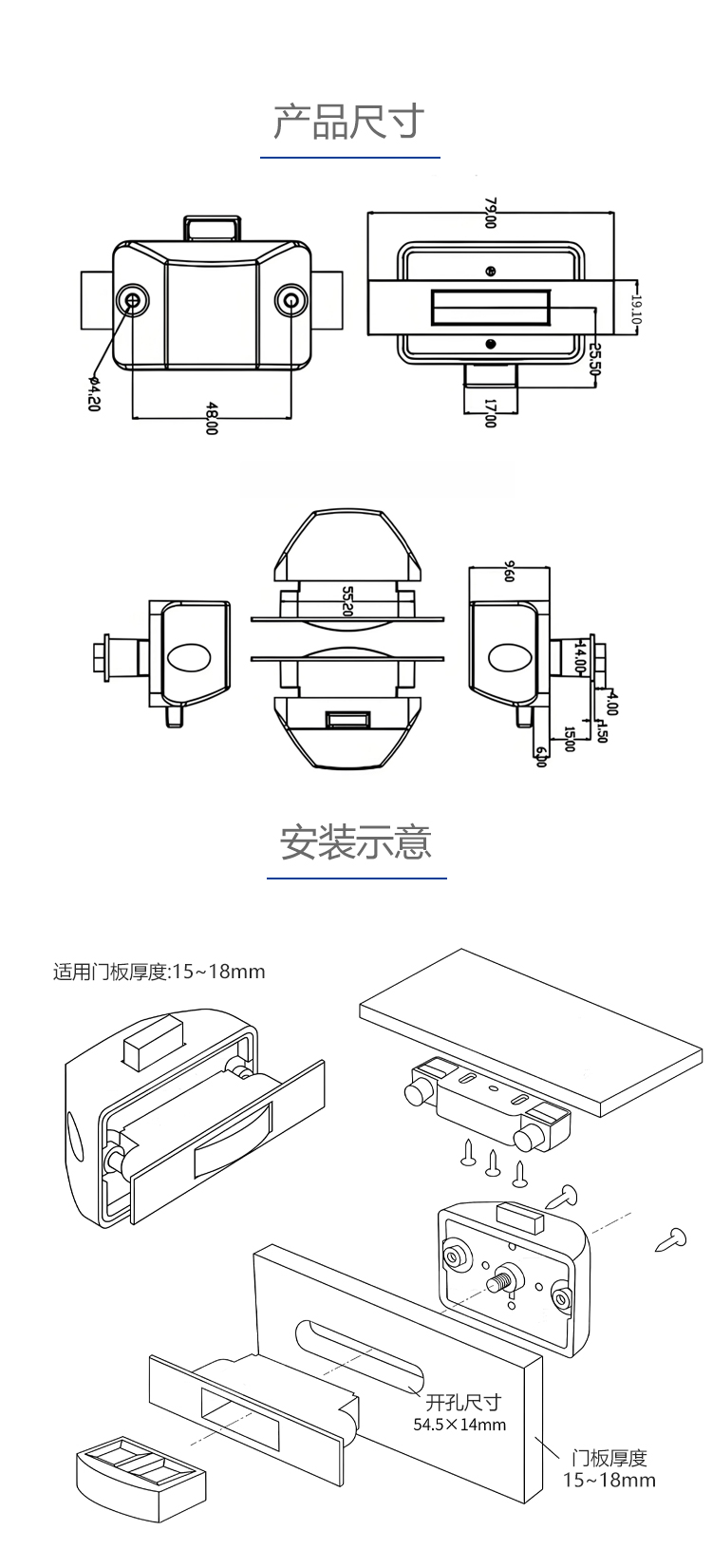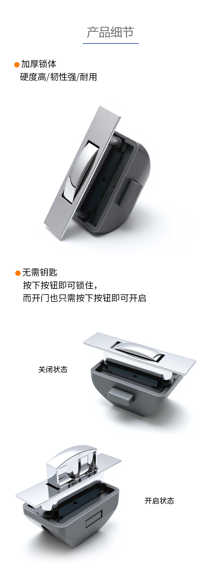 A30房车游艇锁长方形房车按钮锁家具游艇房车吊柜免拉手按钮锁