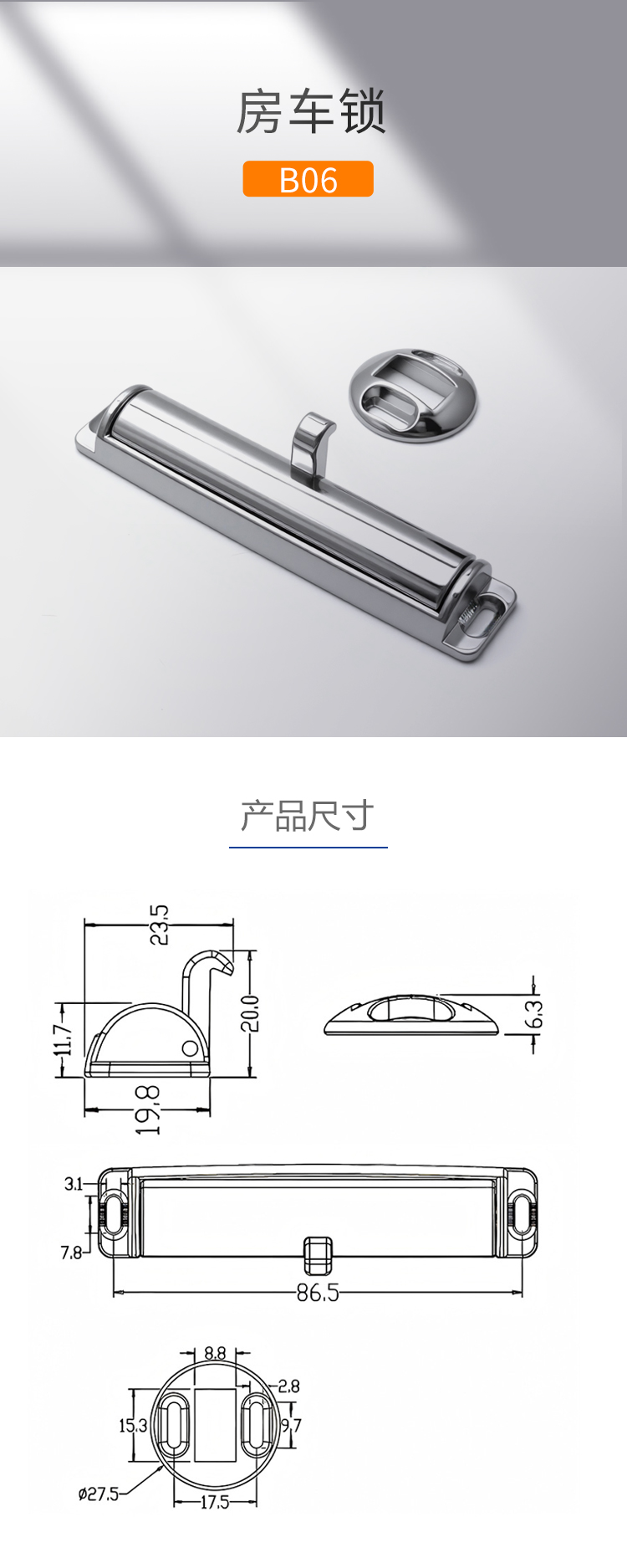 B06房车游艇锁锌合金快艇柜门锁锌合金柜锁柜门暗锁家具游艇房车锁