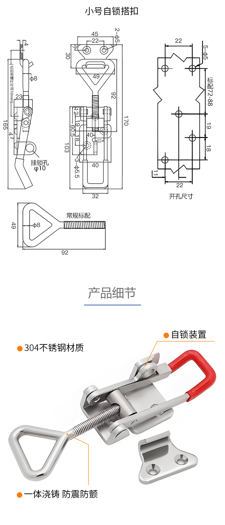 不锈钢搭扣速度适宜夹具可调锁扣速度适宜锁紧卡扣箱扣配件门栓式速度适宜夹钳