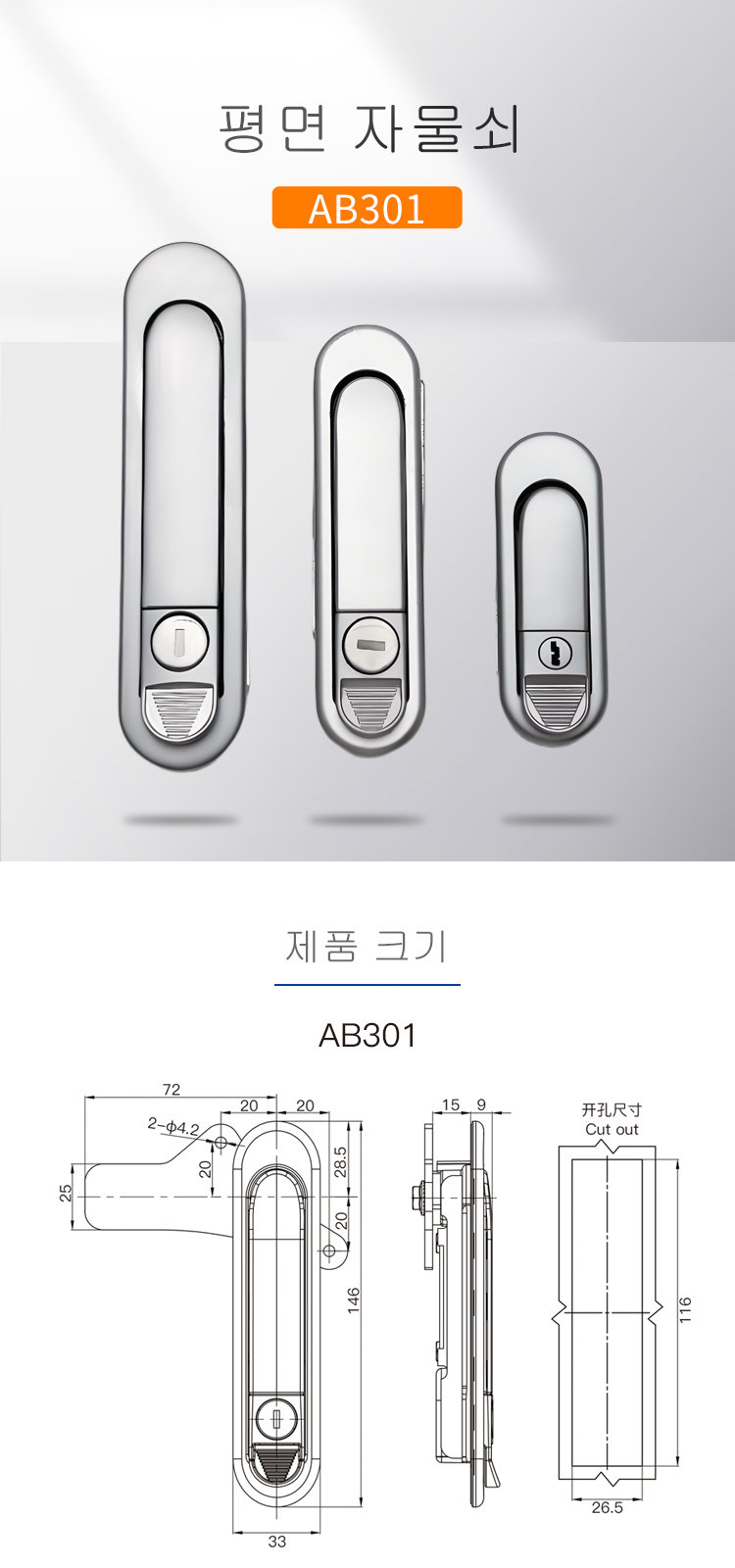 AB301배전함 캐비닛 도어 자물쇠 기계상자 자물쇠 공업설비 자물쇠 통신캐비닛 스위치 평면 자물쇠