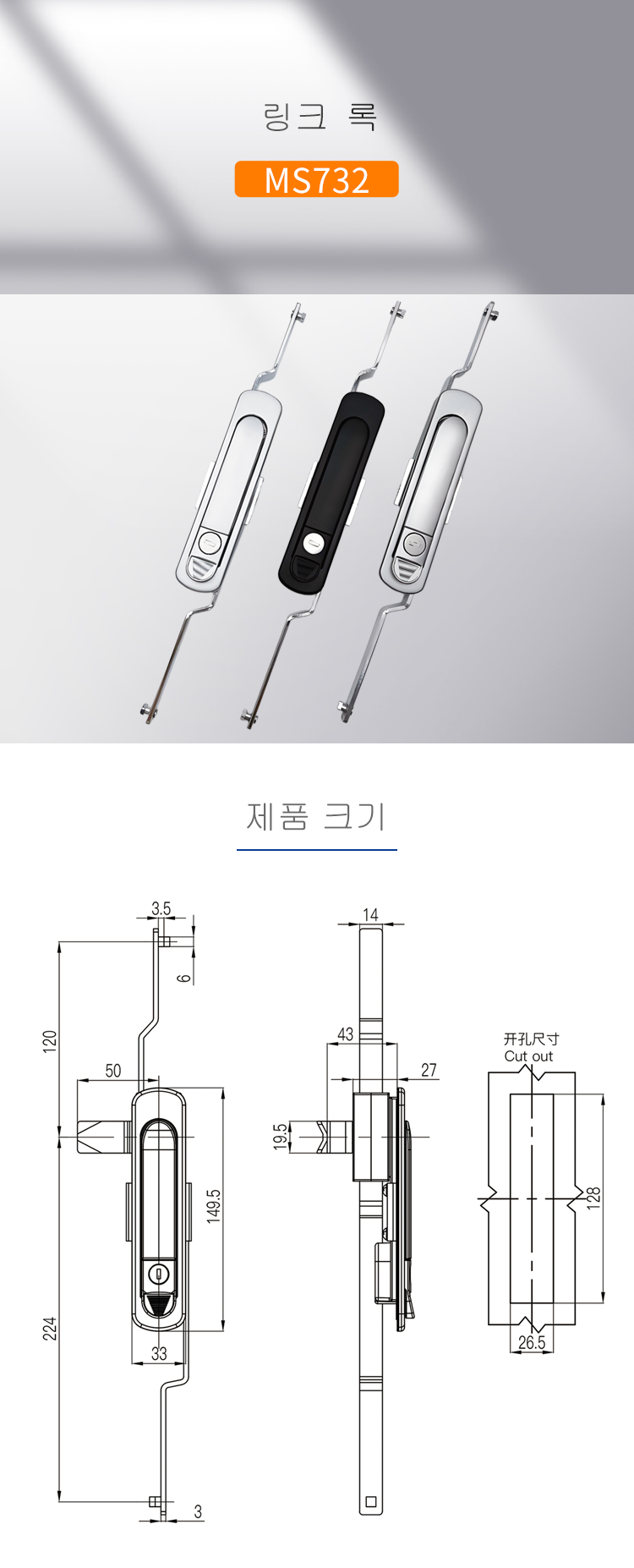 MS732 천지련결로크자물쇠 공업기계상자 자물쇠 전기캐비닛 자물쇠 전기캐비닛 자물쇠 동력제어캐비닛 자물쇠