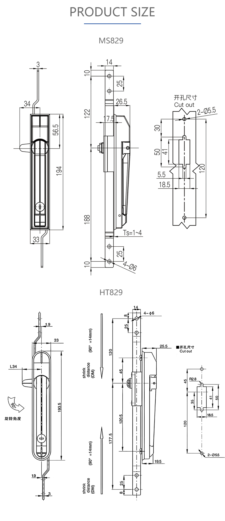 MS829 Sky-ground linkage lock, PS cabinet communication cabinet chassis door lock, cabinet door lock, distribution box pull rod lock