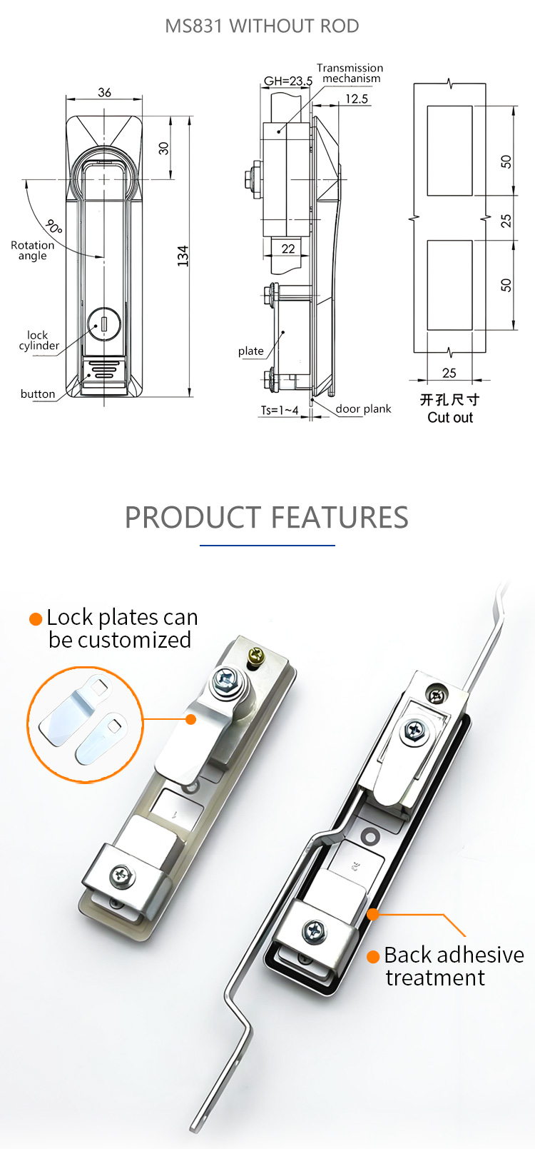 MS831 Electrical cabinet door lock control box lock - ground connection rod lock - mechanical equipment door lock - flat lock