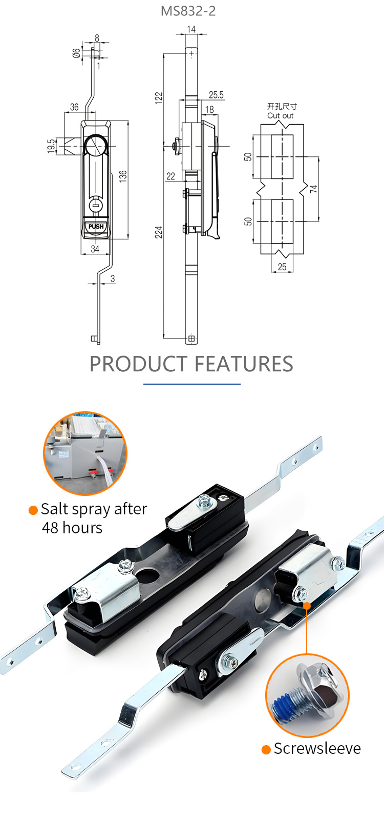 MS832 Connecting Rod Lock Electrical Cabinet Lock Mechanical Door Lock Electrical Cabinet Door Lock Switch Distribution Box Cabinet Door Lock