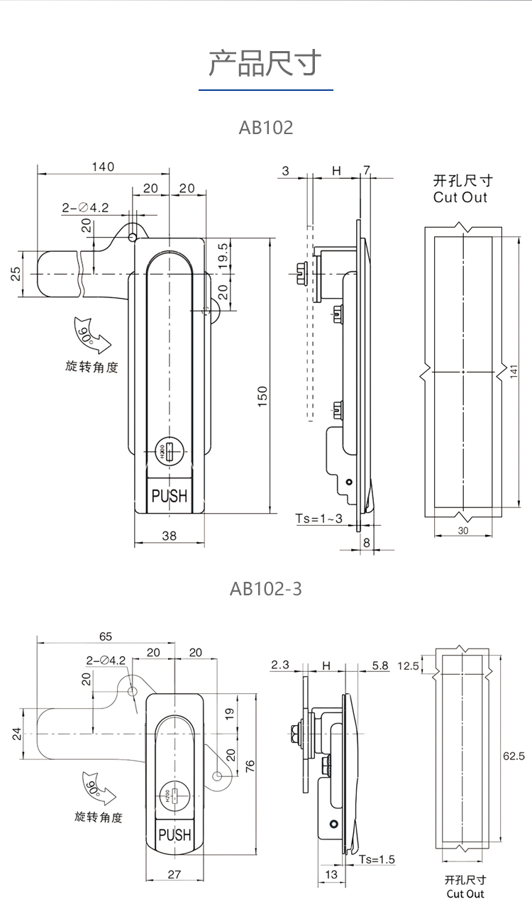AB102开关柜门锁机柜锁配电柜门锁配电箱锁带钥匙平面锁配电柜锁