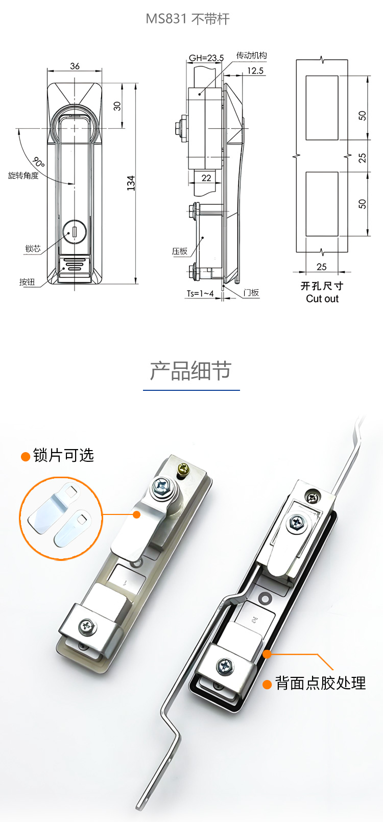 MS831电气柜门锁控制箱锁天地连杆锁机械设备门锁平面锁