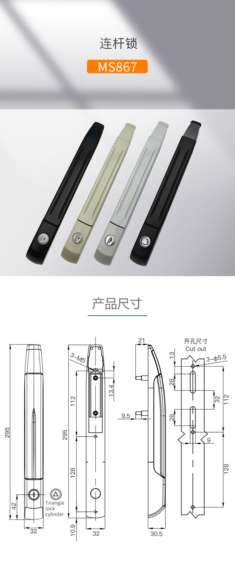 MS867活动铁皮机柜门锁威图柜动力柜配电柜天地连杆锁