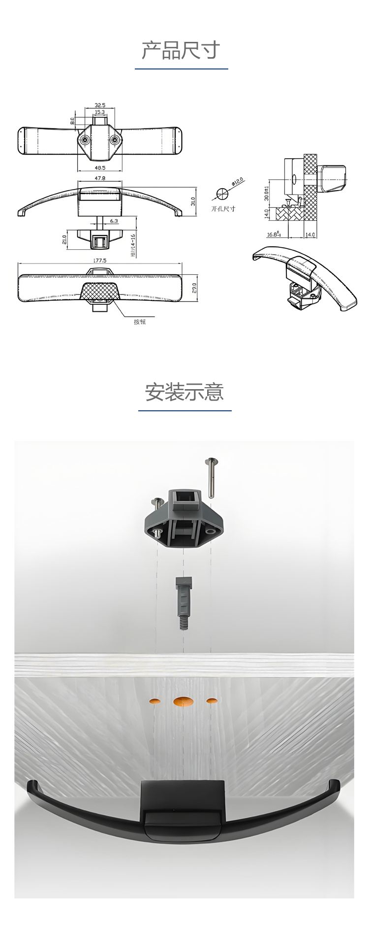 A19房车游艇拉手锁按钮锁汽车拉手房车拉手锁房车配件吊柜锁